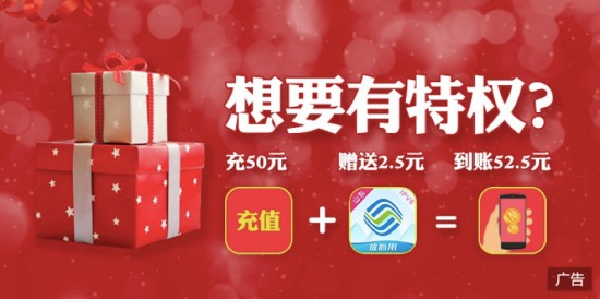 你的話費還是充50元到賬50元?No!今天給您送特權!
