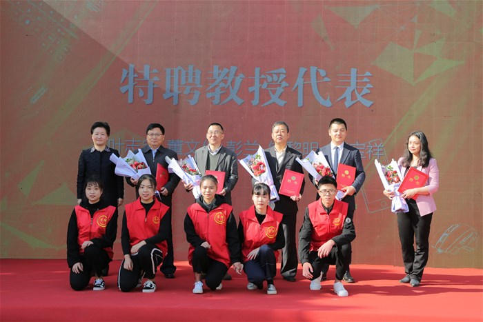 翁雪蓮校長向特聘教授代表頒發(fā)聘書,學(xué)生向特聘教授獻(xiàn)花
