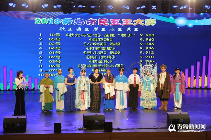 昨天,“戲王”復賽中,19組選手依次登場,參賽選手涵蓋各行各業(yè),他們中有小學生、農民、銀行職員、退休人員等,大賽還吸引了3位盲人選手參賽?,F(xiàn)場除了《釣金龜》《貴妃醉酒》等京劇經典曲目外,茂腔、柳腔地方戲也是唱腔優(yōu)美、功力深厚。盲人選手帶來的大鼓書《古城新覽》古曲新唱,韻味十足,而由6位小朋友共同表演的京劇《國色天香》,讓人歡喜不已。在最終進入決賽的10組選手中,劉永霞、周慧表演的《狀元與乞丐》“教子”選段,技壓群芳,一舉獲得“戲王”桂冠。