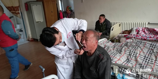 永平養(yǎng)老護(hù)理院多年來(lái)一直悉心照顧眾多不能下床、不能自理的老人,讓義診隊(duì)的黨員和醫(yī)生深受感動(dòng)。醫(yī)生們?cè)诂F(xiàn)場(chǎng)分頭對(duì)房間里的老人進(jìn)行了探視和診斷,大家采用中西醫(yī)結(jié)合的方式為這些不能下床的老人進(jìn)行了詳細(xì)的探看和診療。這些老人平均年齡在80歲以上,身體基本帶病,尤其是一些慢性病影響著老人的身體健康,現(xiàn)在已進(jìn)入漫長(zhǎng)的冬季,也正是老人們?nèi)菀追覆〉募竟?jié),很多疾病稍一不慎即刻發(fā)作,帶來(lái)一定的危險(xiǎn)。