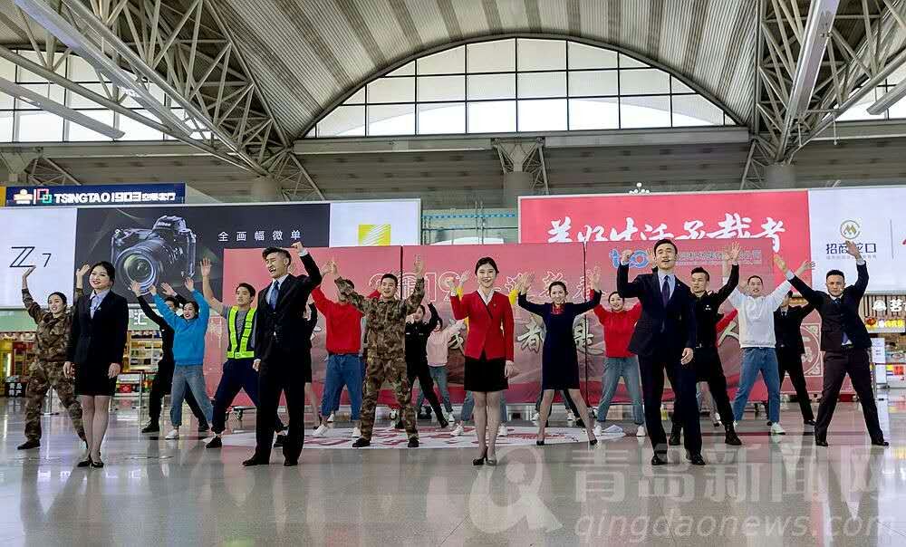 青島機(jī)場上演春運(yùn)歌舞秀。(苗瑋攝)
