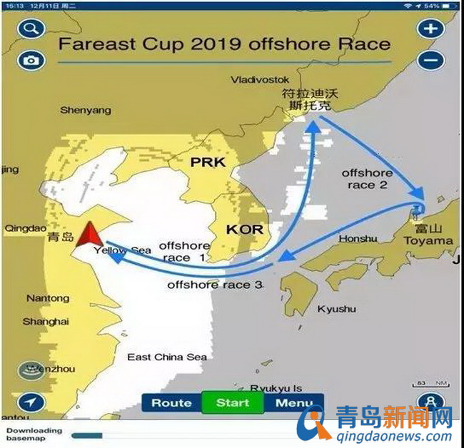 CIQ停泊位( N43°06.670’; E131°53.160’)場地賽位置(N43°03.154’;E131°54.346’