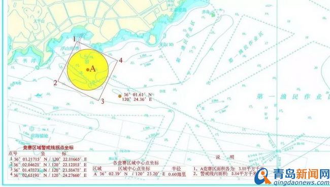 附件2:場地賽競賽水域示意圖:青島奧帆中心(N36°03.427’;E120°23.410’)