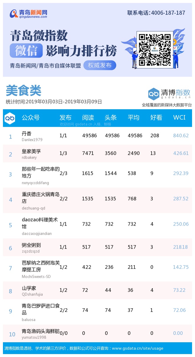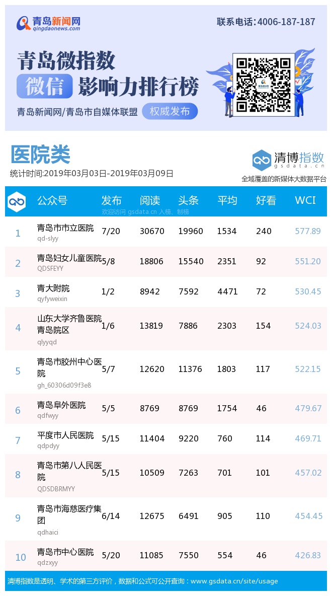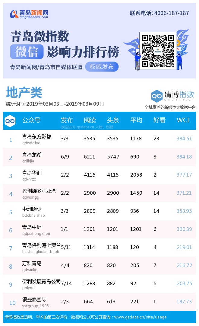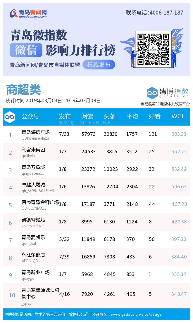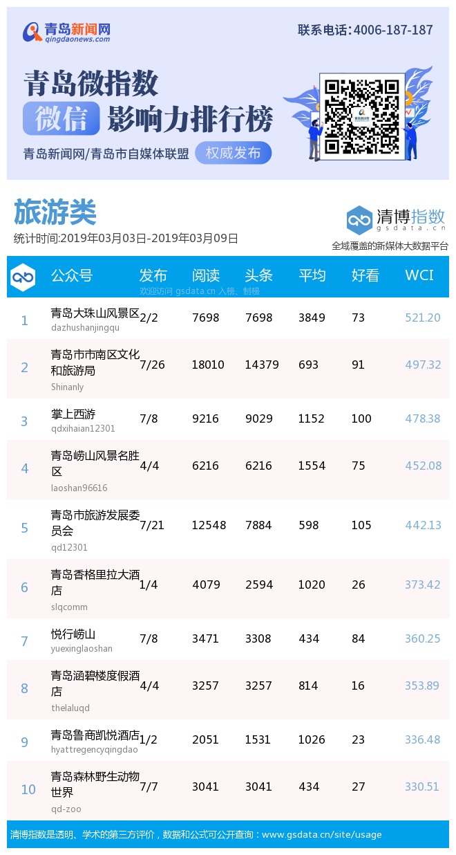 3、本次榜單收錄了青島14個行業(yè)微信公眾號,如您的賬號暫未收錄,可聯(lián)系4006-187-187。