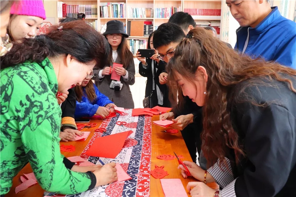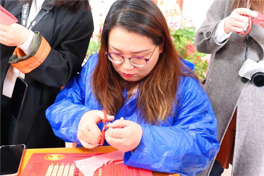 自媒體聯(lián)盟成員認(rèn)真學(xué)習(xí)剪紙過程
