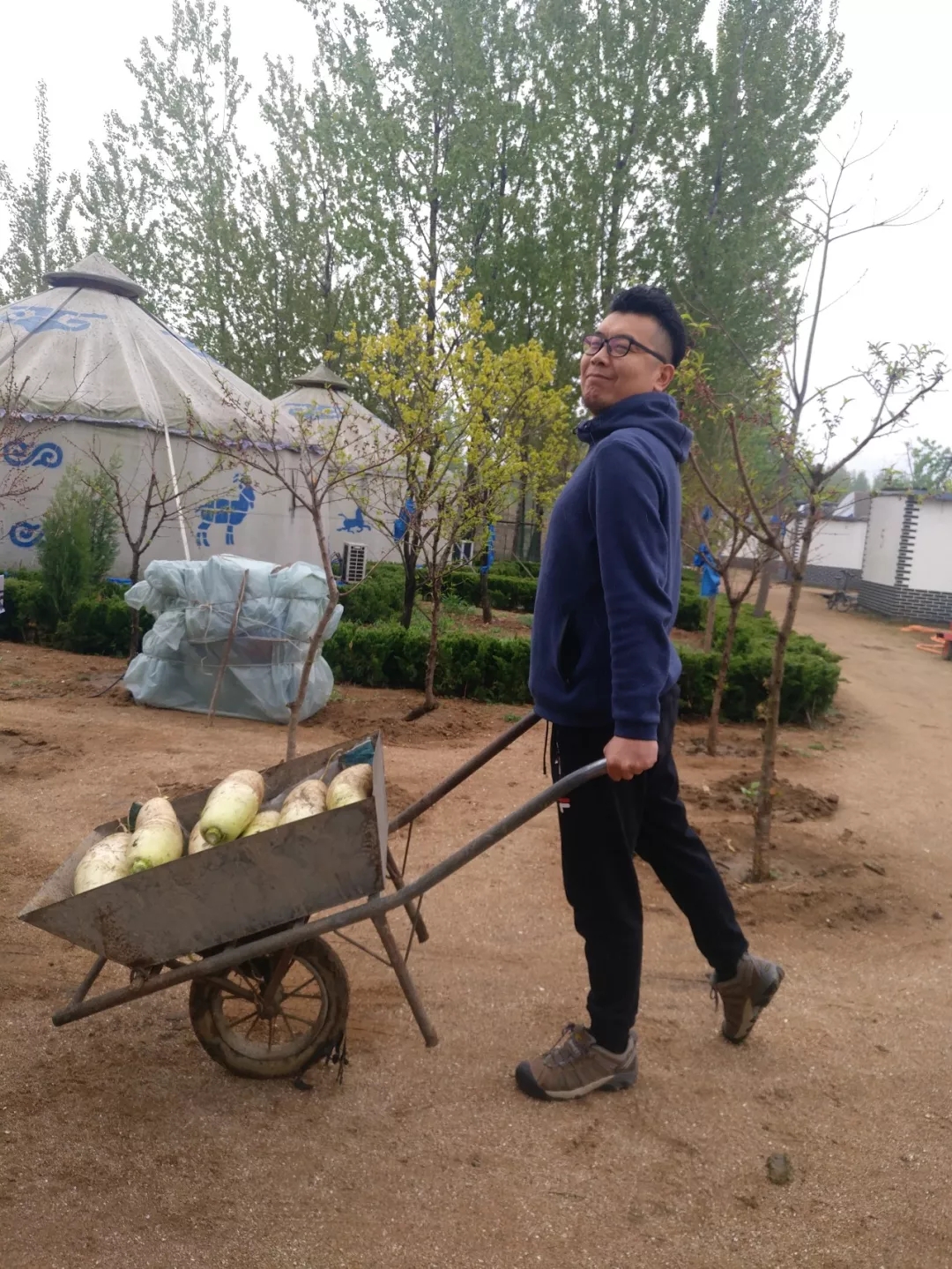 “李大饞師”與農(nóng)場大蘿卜留影