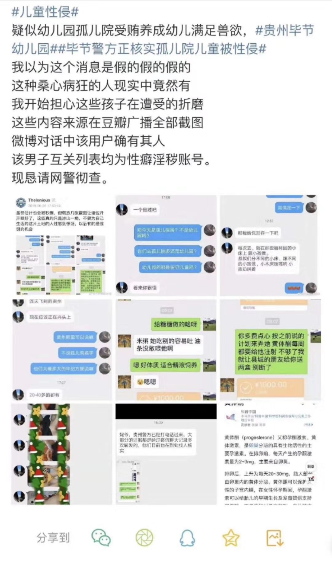 6月26日,有微博網(wǎng)友從豆瓣論壇中發(fā)現(xiàn)了一則與“侵害幼童”的帖子,在微博上引發(fā)網(wǎng)友們的高度關(guān)注。相關(guān)公安部門(mén)立即組織專(zhuān)案組進(jìn)行調(diào)查。