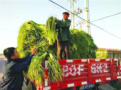 村民正在將蒜薹裝車。