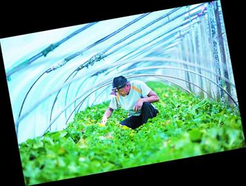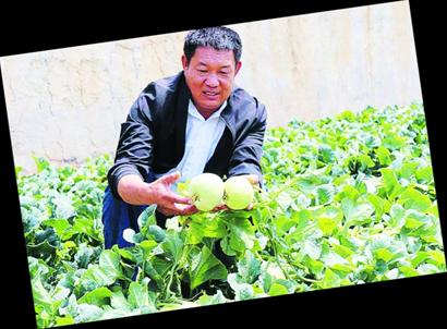 韓埠村果蔬專業(yè)合作社副理事長(zhǎng)姜洪利正在采摘甜瓜。
