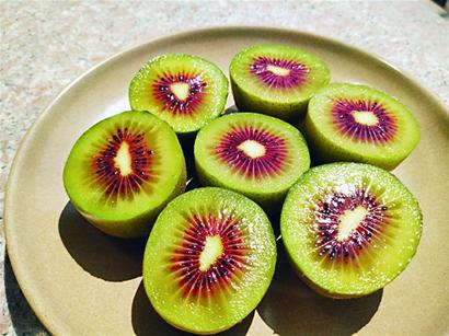 用心的栽培,換來的是長勢喜人。油油綠葉中,一串串毛茸茸的獼猴桃讓人一看就忍不住想摸一摸,甚至摘下來大吃幾口?!艾F(xiàn)在早熟品種——紅心獼猴桃已經(jīng)開始成熟,這幾天我們正忙著采摘?!备倒鹦勒藥讉€獼猴桃讓記者嘗嘗,果然又軟又甜,果肉有入口即化的感覺。傅桂欣又摘了幾個果子,讓工作人員拿到實(shí)驗(yàn)室檢測一下糖度。傅桂欣說,通常情況下,她家品牌的獼猴桃甜度能高達(dá)17度以上,遠(yuǎn)遠(yuǎn)超過市面平均水平。