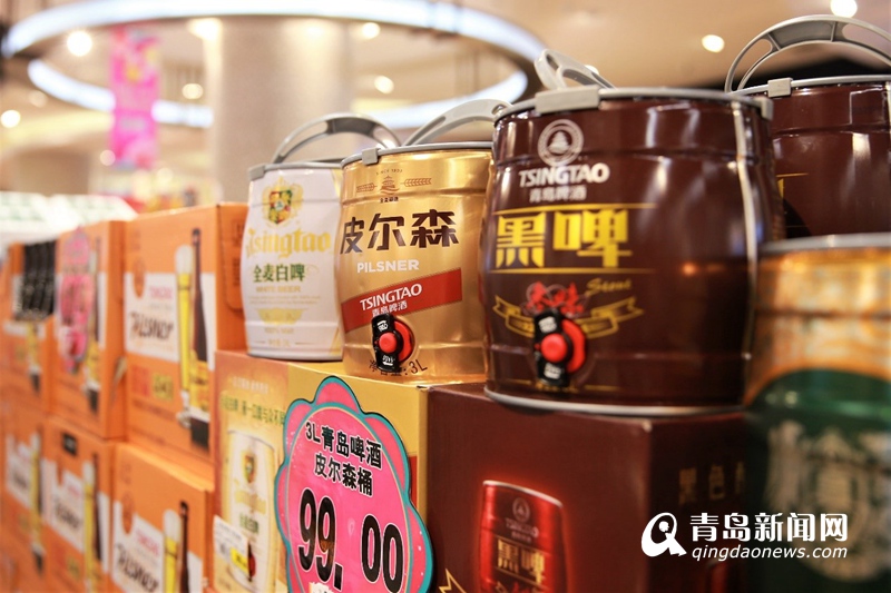 走訪中記者還發(fā)現(xiàn),除了常見的玻璃瓶和易拉罐包裝外,青島啤酒黑啤、白啤、皮爾森、奧古特還推出了3升和5升的桶裝啤酒,成為消費(fèi)者的舌尖“新寵”。