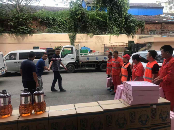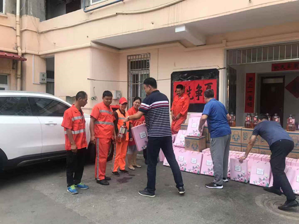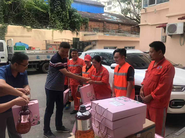 辦事處領(lǐng)導(dǎo)們?yōu)榄h(huán)衛(wèi)工人送上節(jié)日的祝福和問候,帶來了花生油、月餅等節(jié)日禮物,同時(shí)說道:“環(huán)衛(wèi)工人是我們城市的美容師,工作十分辛苦,長年累月風(fēng)里來雨里去,為城市的環(huán)境整潔做出了貢獻(xiàn),向一直堅(jiān)守在一線的環(huán)衛(wèi)工人表示衷心感謝?!笔斜杯h(huán)衛(wèi)一公司鎮(zhèn)江路公司全體職工十分感謝鎮(zhèn)江路街道辦事處領(lǐng)導(dǎo)一直以來對環(huán)衛(wèi)工作的的理解和支持,并表示一定會腳踏實(shí)地地做好本職工作,堅(jiān)守崗位,再接再厲,為改善轄區(qū)環(huán)境,建設(shè)國際航運(yùn)貿(mào)易金融創(chuàng)新中心核心區(qū),共建“美麗青島”貢獻(xiàn)自己的力量。