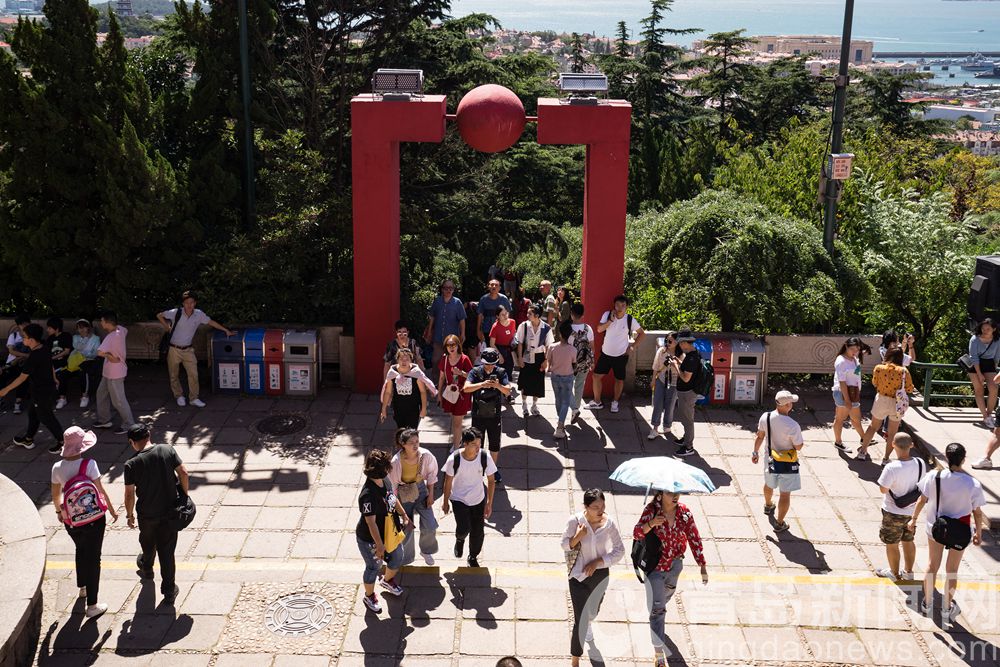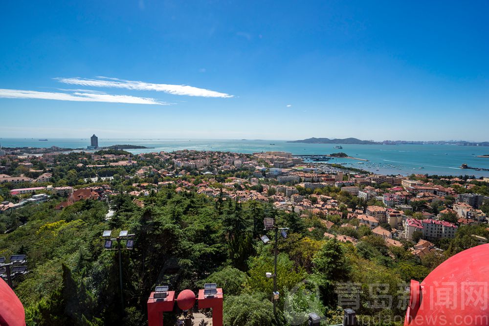 青島新聞網(wǎng)9月16日訊(文/龐為圖/孟憲朋)秋高氣爽,在青島信號山,游人們登頂“大紅球”,360度俯瞰全城,秋日里的紅瓦綠樹碧海藍(lán)天令人陶醉。