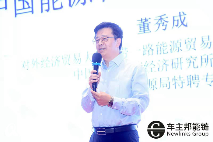 圖注:“2019中國加油站大會·數(shù)字化下的能源生態(tài)變革”分論壇,對外經(jīng)濟(jì)貿(mào)易大學(xué)一帶一路能源貿(mào)易與發(fā)展研究中心主任、國家能源局特聘專家董秀成教授發(fā)表主旨演講。