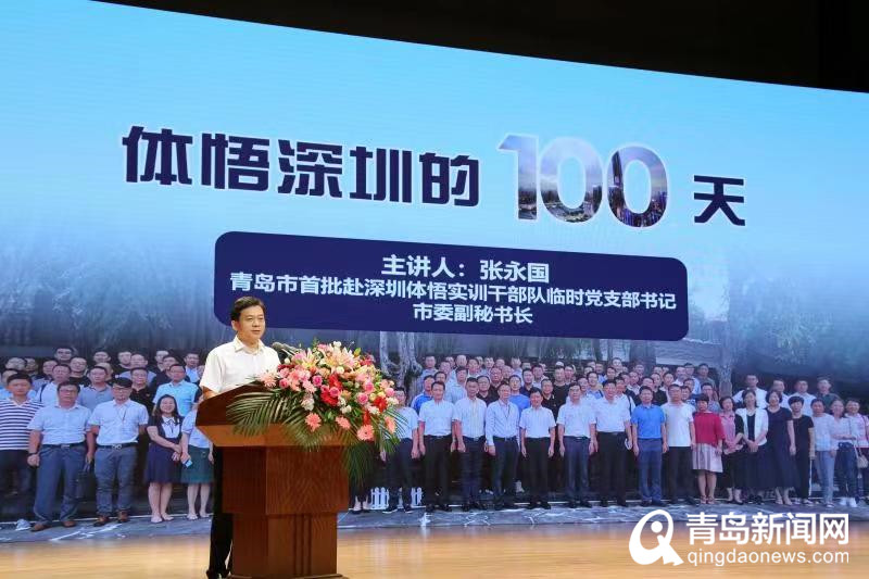 青島新聞網(wǎng)9月21日訊(記者 丁淑華)9月21日,青島市首批赴深圳體悟?qū)嵱?xùn)成果宣講團(tuán)報(bào)告會在嶗山區(qū)市民文化中心舉行。市委副秘書長、首批體悟?qū)嵱?xùn)干部隊(duì)臨時(shí)黨支部書記張永國同志,帶領(lǐng)8位首批赴深圳干部組成宣講團(tuán),結(jié)合在深圳的所見所聞所思所感,從我眼中的深圳——“敢、為、人、先”和我心中的青島——“比、學(xué)、趕、超”八個(gè)方面分享心得感悟。
