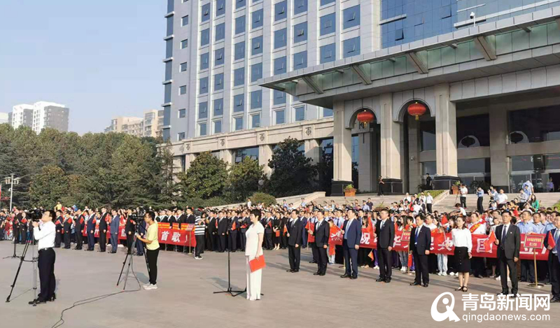 膠州舉行慶祝新中國成立70周年升旗儀式 4000余人參與