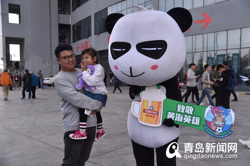 小球迷與青島啤酒的玩偶一起,致敬黃海英雄。