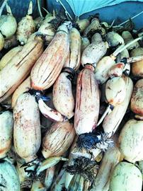 現(xiàn)在正是蓮藕大量上市的季節(jié),在島城幾家的農(nóng)貿(mào)市場,幾乎都能看到蓮藕的身影,價格從3元一斤到6元一斤不等。