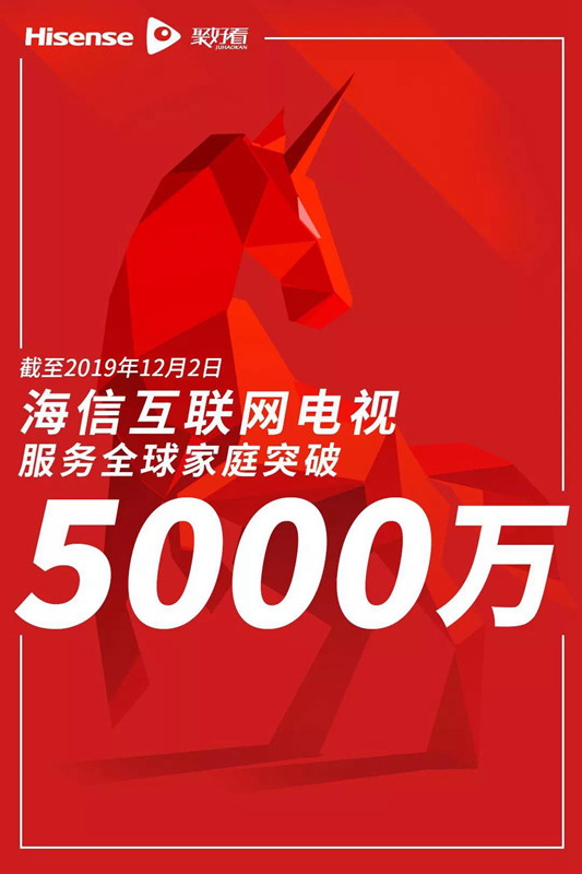 青島新聞網(wǎng)12月4日訊(記者 黃曉)今天,海信旗下互聯(lián)網(wǎng)獨角獸公司聚好看發(fā)布數(shù)據(jù),截至12月2日,其負責運營的海信互聯(lián)網(wǎng)電視服務全球超過5000萬個家庭!其中國內(nèi)家庭3818萬,海外家庭1182萬,行業(yè)內(nèi)首次實現(xiàn)這一歷史性突破,進一步鞏固了其全球最大互聯(lián)網(wǎng)電視云平臺的領先優(yōu)勢。