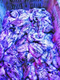 在市場看到鮮墨魚有兩種,一種是顏色潔白,又大又漂亮;另一種是墨魚身上沾滿了黑糊糊的墨汁。這兩種墨魚的價格差不多,顏色發(fā)白的墨魚價格每斤還要便宜1-2元。根據(jù)個頭的大小零售價格都在20-28元。記者在鎮(zhèn)江北路農貿市場遇到祥子家水餃店負責人劉明,該店的餃子有好多種,主要食材他親自選購。劉明告訴記者,買身上帶墨汁的墨魚,顏色發(fā)白很好看的墨魚不要買。他介紹說,帶墨汁的墨魚是剛從船上運到市場的,顏色發(fā)白的墨魚經過淡水沖洗浸泡,雖然顏色好看,但是墨魚肉里水分含量大,口感也差。還有的業(yè)戶加堿水浸泡,這樣墨魚的重量會擴大很多,一斤墨魚可以泡到一斤半重。 如何辨別鮮墨魚質量的好壞呢?劉明介紹了三個妙招:一看:質量好的墨魚體形平展、寬厚,色澤光亮,散發(fā)著一股鮮香味。局部有褐斑,表面暗白色,背部呈暗紅色的可能質量有問題,購買應謹慎。二壓:按壓一下墨魚的膜,好墨魚的腹膜緊實、有彈性。三扯:扯一下墨魚頭,頭與身體連接緊密,不易扯斷的為好墨魚。