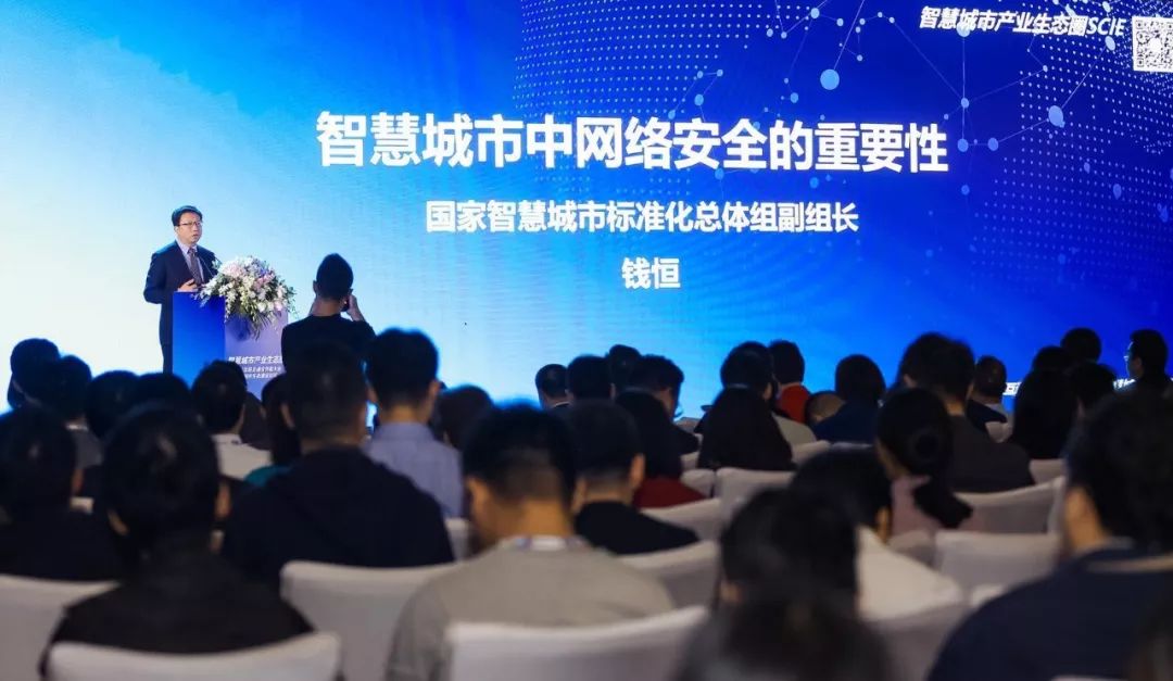 ▲國家智慧城市標準化總體組副組長錢恒在“智慧城市生態(tài)建設論壇”發(fā)表演講