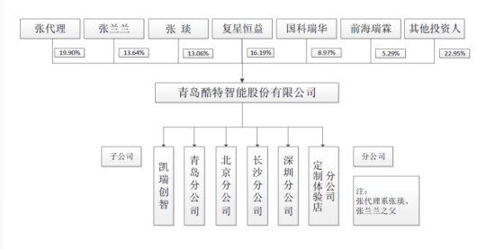 公告顯示,酷特智能控股股東為張代理,實際控制人為張代理及其家族,目前合計持有8,388.6487萬股酷特智能的股份,占公司46.60%的比例。
