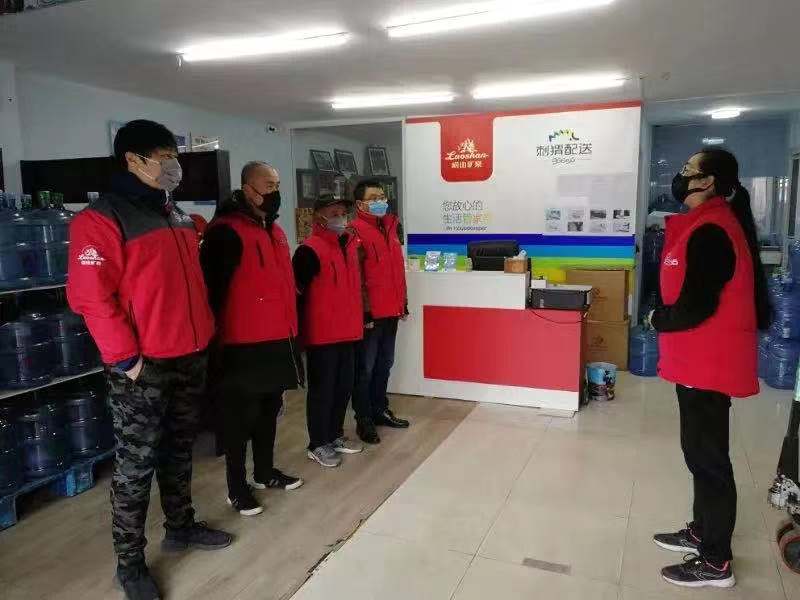 在終端配送方面,刺猬網(wǎng)公司所有加盟配送商全部簽署承諾書(shū),對(duì)社會(huì)鄭重承諾:對(duì)店員及配送員工進(jìn)行安全防護(hù)上崗培訓(xùn);工作期間全天佩戴防護(hù)口罩;用肥皂和洗手液洗手確保個(gè)人衛(wèi)生;每日定時(shí)對(duì)店鋪及用品和設(shè)施及工具等進(jìn)行清潔消毒;每日定時(shí)對(duì)員工進(jìn)行體溫測(cè)量并及時(shí)上報(bào);保持店內(nèi)通風(fēng)和環(huán)境有序等,全力以赴做好疫情防控,為消費(fèi)者竭力提供健康、安全的嶗山牌桶裝水和大包裝水。