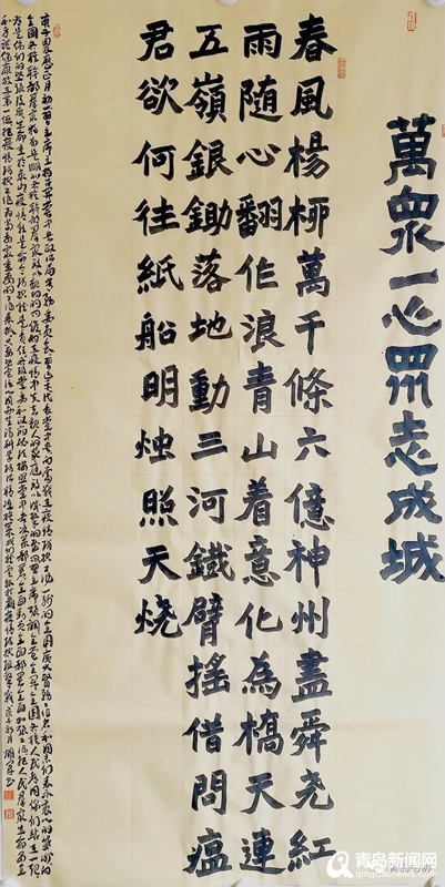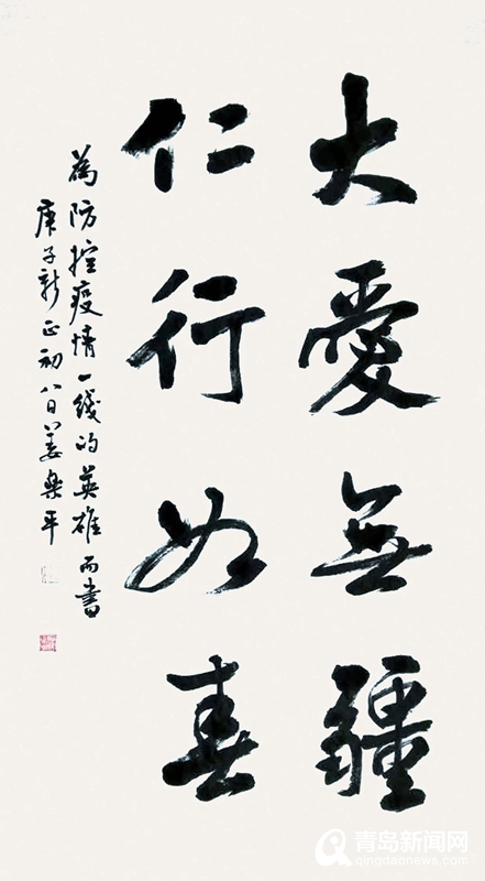 青島新聞網2月5日訊(記者 王超)近日以來,全國各地團結一致、萬眾一心,正在與新型冠狀病毒疫情展開一場嚴峻的斗爭。青島市書法家協會自1月30日發(fā)出“和你在一起"號召創(chuàng)作抗擊新型冠狀病毒疫情主題作品倡議后,協會所屬會員,積極參與,共獻愛心。在短短的幾天時間里,青島市書法家協會主席范國強、青島畫院院長張鳳塘、青島市書法家協會常務副主席兼秘書長郭強,以及姜樂平、楊乃瑞、劉詠、劉健、宋文京、張穎、高巖、董坤、張耀輝等青島市書法家協會副主席,與島城百余位書法家們先后以抗擊新型冠狀病毒肺炎疫情為主題,精心創(chuàng)作謳歌一線醫(yī)務人員、謳歌人民堅定抗疫的書法作品四百余幅。