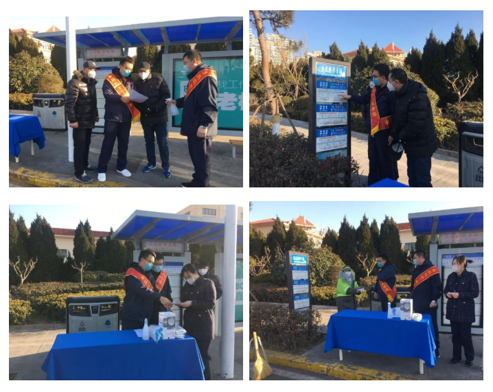 在線下,青島市慈善益站青島公交嶗山巴士第六分公司的志愿者們紛紛走上站頭大力宣傳怎樣預(yù)防新型冠狀病毒和怎樣做好個(gè)人防護(hù)等問(wèn)題,并宣講“盡量少出門,出門戴口罩,在家勤洗手、常開窗”等防疫知識(shí)。