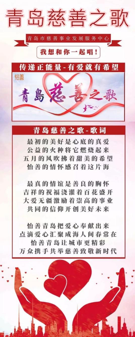 在青島,有這樣一群人,他們用行動(dòng)演繹出一個(gè)個(gè)的暖心故事,用善舉溫暖著島城人們的心,他們就是青島市慈善益站,怡善志愿者團(tuán)隊(duì)。他們的暖心故事被譜寫成一首歌曲,名為《青島慈善之歌》。