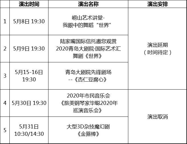 重要通知!青島大劇院5月演出調(diào)整公告