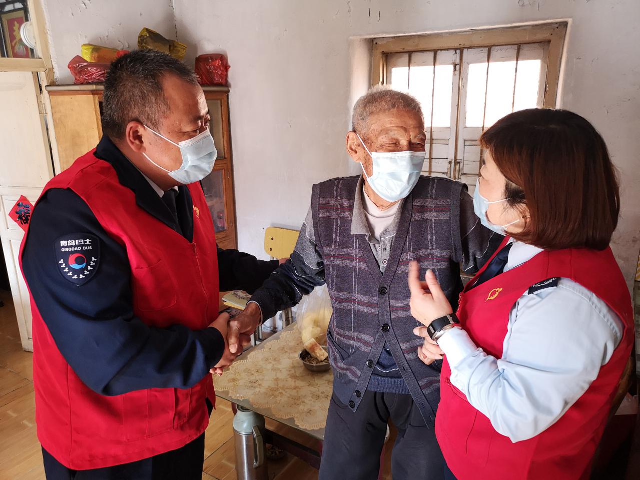 90后志愿者是朝氣蓬勃,奮發(fā)有為,肩負民族未來希望的青年一代。五四青年節(jié)來臨之際,青島市慈善益站“怡善巴士”青島公交嶗山巴士第六分公司愛心團隊的黨團員志愿者孟珂、丁健、孫偉杰、張恒瑞在黨支部書記董善杰的帶領下,相約來到嶗山區(qū)金家?guī)X街道王家村社區(qū)探望結(jié)對的老人,為老人購買了新鮮雞蛋、水果和老人愛吃的桃酥。