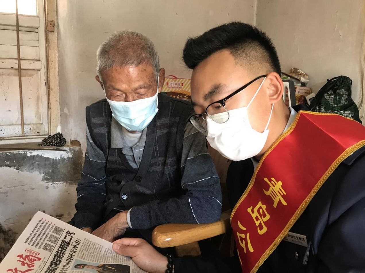90歲的曲方平大爺家,看到志愿者到來的剎那間,老人臉上浮現(xiàn)出驚喜的表情,志愿者為曲大爺帶來了他愛看的雜志和報刊,共青團志愿者張恒瑞和孫偉杰為曲大爺誦讀了報紙上的精彩文章,曲大爺說聽志愿者讀報,今天就不用費眼神看了。團員志愿者說:只要爺爺愛聽,以后我們會常來陪伴您為您讀書讀報的。曲大爺聽了高興的拍手叫好。志愿者詢問了曲大爺最近的身體情況,講述了最近外面的一些新鮮事與老人一起分享。