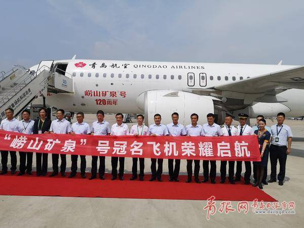 8日上午9:30,在青島流亭國(guó)際機(jī)場(chǎng)停機(jī)坪,青島航空“嶗山礦泉”號(hào)冠名飛機(jī)首航儀式成功舉行。記者現(xiàn)場(chǎng)看到,在這架冠名為“嶗山礦泉”號(hào)的飛機(jī)前機(jī)頭兩側(cè),除常規(guī)的“青島航空”標(biāo)識(shí)外,還噴繪了大紅色的“嶗山礦泉號(hào) 120周年 1900-2020”的字樣,并繪有嶗山礦泉的商標(biāo)標(biāo)志,這一刻,青島人自己的礦泉水與青島人自己的飛機(jī)緊密結(jié)合到了一起。