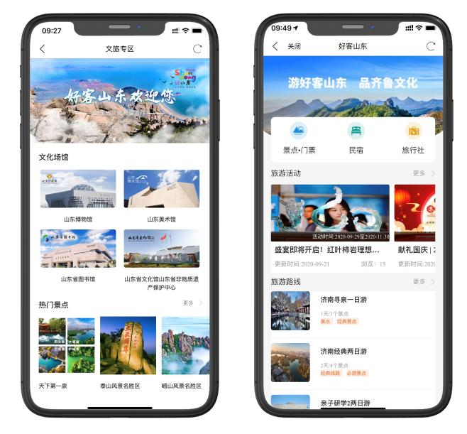 山東旅游綜合性公共服務(wù)平臺“好客山東”上線“愛山東”APP文旅專區(qū),在省文旅部門的支持下,專區(qū)整合了全省數(shù)千個旅游景點(diǎn)介紹、門票預(yù)訂、周邊游線路推薦、民宿推薦、旅行社查詢、文化場館參觀預(yù)約等文旅服務(wù)。