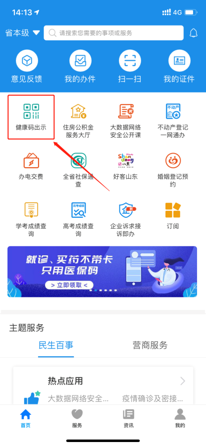 登錄“愛山東”APP,在首頁點擊“健康碼出示”,即可在彈出頁面最下方點擊相應模塊,顯示核酸檢測查詢結果。