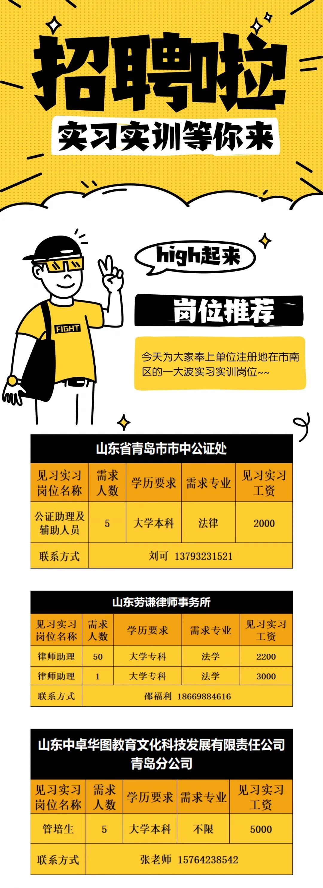 市南區(qū)見習(xí)實習(xí)崗位推薦來啦!