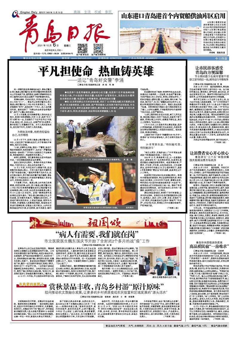 李涌犧牲后,青島市民自發(fā)留言數(shù)萬條,追憶這位心里裝著使命、責(zé)任和對人民無限的愛的好交警。