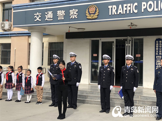 10月20日上午,在青島交警同三高速公路大隊駐地,“向李涌學(xué)習(xí)致敬活動暨巡邏急救包發(fā)放儀式”舉行?;顒觾x式上,李涌的女兒李圣來到現(xiàn)場,和大隊民警代表、膠州路政管理處代表、青島瑞華小學(xué)師生代表們一起緬懷英雄,向英雄致敬!在場的同三高速大隊的民輔警們向英雄的女兒李圣敬禮,青島瑞華小學(xué)的學(xué)生們?yōu)槔钍狭缩r艷的紅領(lǐng)巾,向英雄的女兒致以崇高的敬禮。