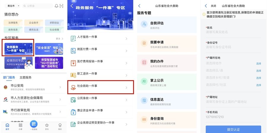 青島新聞網(wǎng)2月21日訊 為方便困難群眾救助申請,改變“來回跑”“到處問”的局面,“愛山東·青e辦”APP政務(wù)服務(wù)“一件事”專區(qū)上線了“社會救助一件事”,實(shí)現(xiàn)了救助事項(xiàng)的“掌上辦”“指尖辦”。