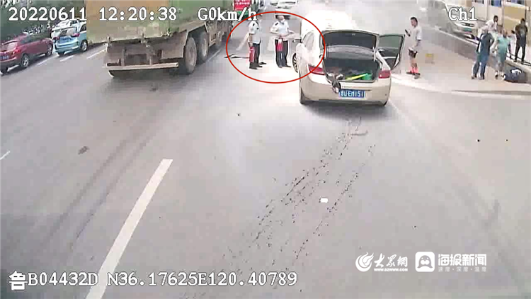 嶗山巴士工作人員立即調(diào)取了當(dāng)時的視頻監(jiān)控,還原了事情的真相。原來,11日中午12時許,嶗山巴士387路駕駛員戴志松行駛至李滄體育中心車站附近時,看到路邊有一輛私家車發(fā)動機位置正在冒煙,私家車車主正在路邊手足無措,十分無助。見狀,戴志松立即將車停在安全位置,向乘客簡單交代情況后就拎起滅火器沖了下去,但由于火勢較大,車廂上的兩個備用滅火器全部使用完畢也沒能將火撲滅,就在這時,戴志松看到后方有一輛122路公交車即將進(jìn)站……