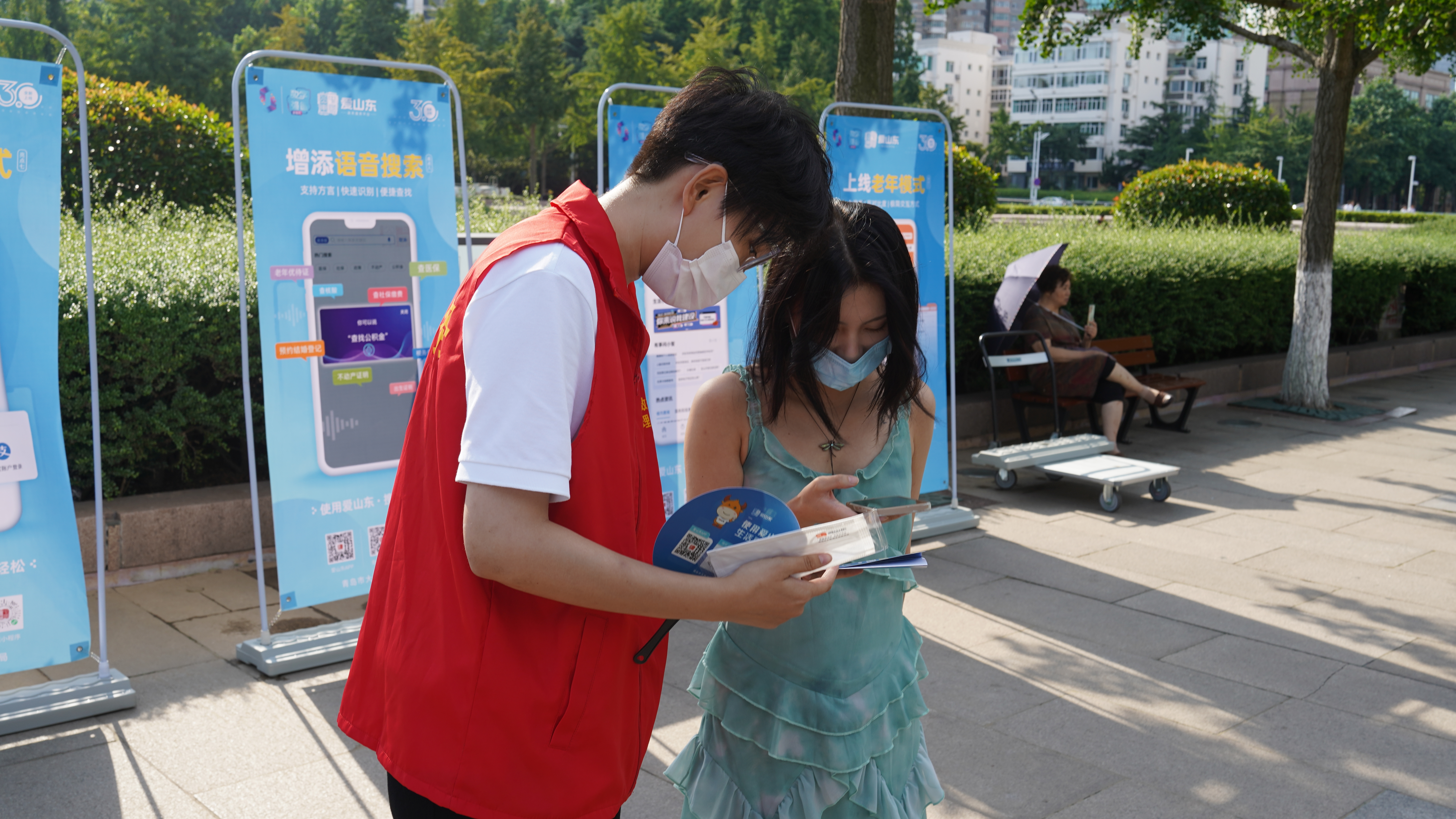 8月的青島天氣雖然炎熱,但活動(dòng)依然引起了廣大市民和游客的關(guān)注,不少市民在“愛山東”3.0版本新功能、新特性主題展架前駐足瀏覽?,F(xiàn)場工作人員依次向市民們介紹了3.0版本的新功能,如首頁的“惠民”、“利企”板塊,可以為個(gè)人(尤其是特殊群體)提供高頻服務(wù)入口,也可以為各行業(yè)的企業(yè)用戶提供便捷的服務(wù)入口;最新上線的一件事辦理專區(qū),可以通過減材料、減環(huán)節(jié)、減流程,依據(jù)省內(nèi)“雙全雙百”服務(wù)事項(xiàng),建設(shè)個(gè)人和企業(yè)的全生命周期應(yīng)用服務(wù)專區(qū),降低市民辦事成本,大大提高辦事效率....