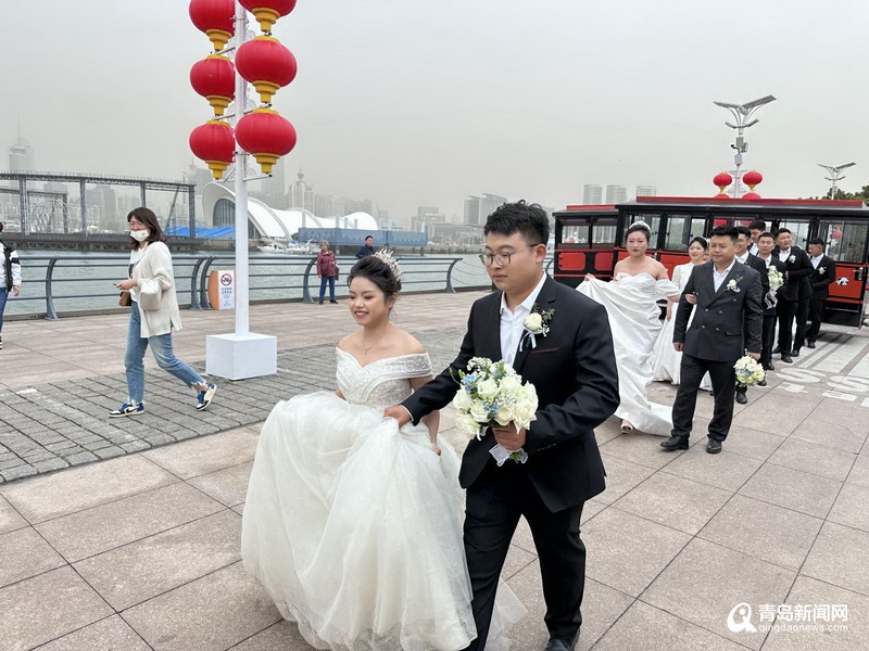 8對(duì)新人在青島復(fù)古鐺鐺車中一起巡游青島最美景色,向這座承載著無數(shù)建筑人青春的城市表達(dá)最深沉的敬意,也讓這座城市刻印下人生中最美好的回憶。潔白的婚紗、甜蜜的笑靨使整個(gè)車隊(duì)成為歡樂的海洋,歡笑聲、快門聲交織匯聚,譜寫著愛的進(jìn)行曲,有海有山有愛與自由,有你與溫柔,偶遇巡游的路人們也紛紛駐足揮手,為新人們送上一份真摯的祝福。
