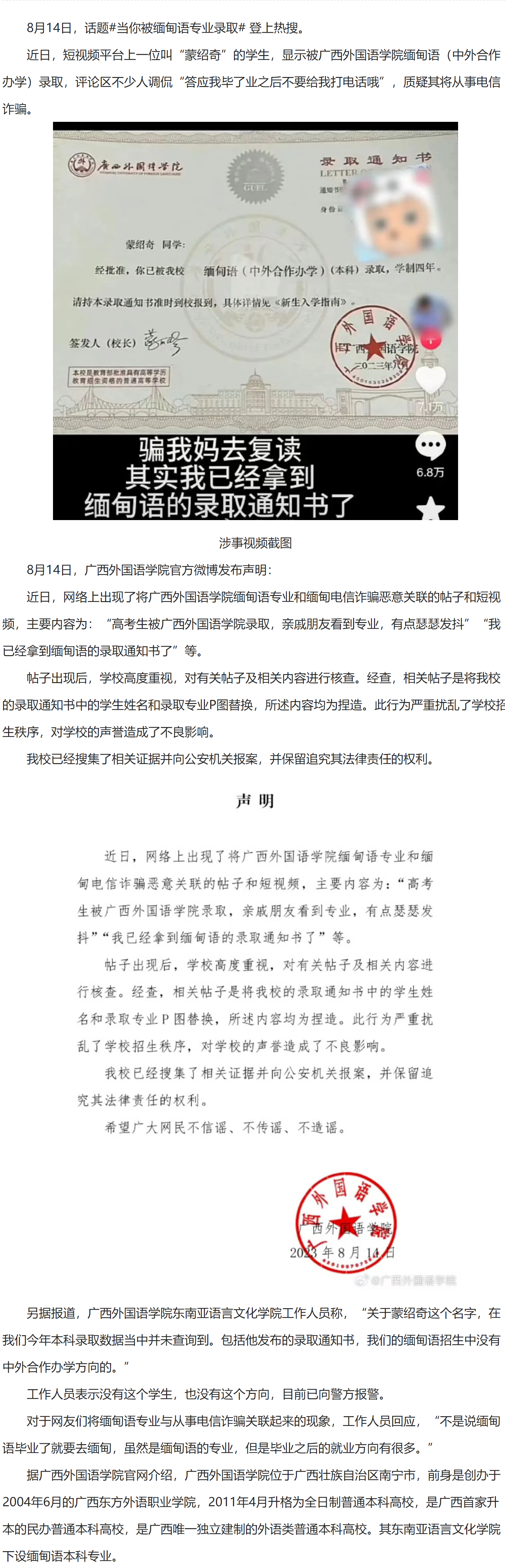 高校緊急聲明:已報警!