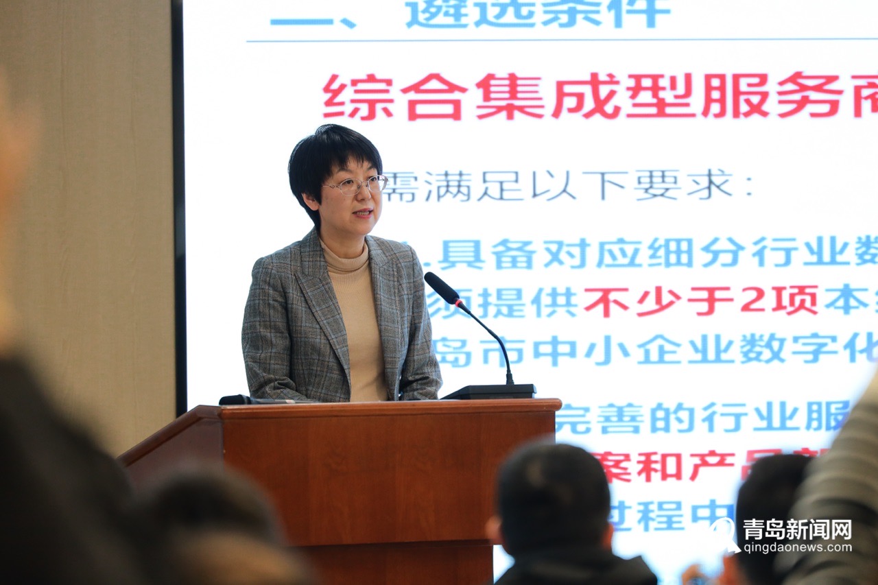 活動(dòng)現(xiàn)場(chǎng),市民營(yíng)經(jīng)濟(jì)局政策規(guī)劃處處長(zhǎng)倪雯就《青島市中小企業(yè)數(shù)字化轉(zhuǎn)型城市試點(diǎn)數(shù)字化轉(zhuǎn)型推薦服務(wù)商遴選標(biāo)準(zhǔn)》進(jìn)行解讀,劃定了遴選范圍,制定了遴選條件,明確了遴選流程。