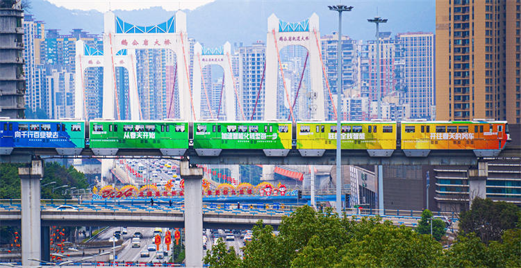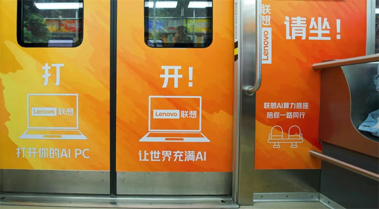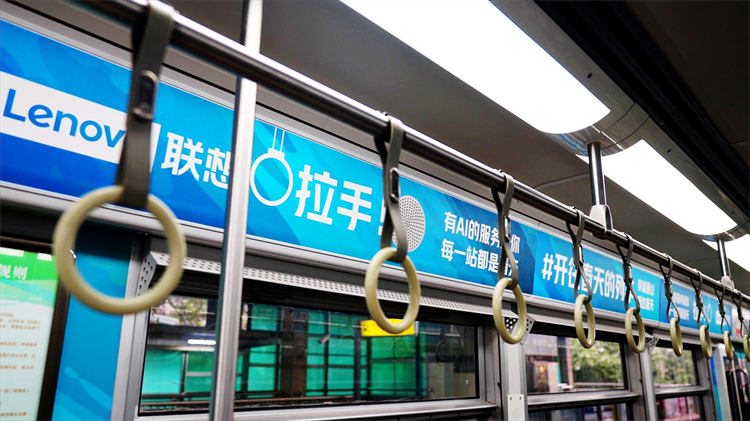 “聯(lián)想全棧智能,讓世界充滿AI,從春天開始”為主題的輕軌廣告在重慶輕軌2號(hào)線全新亮相