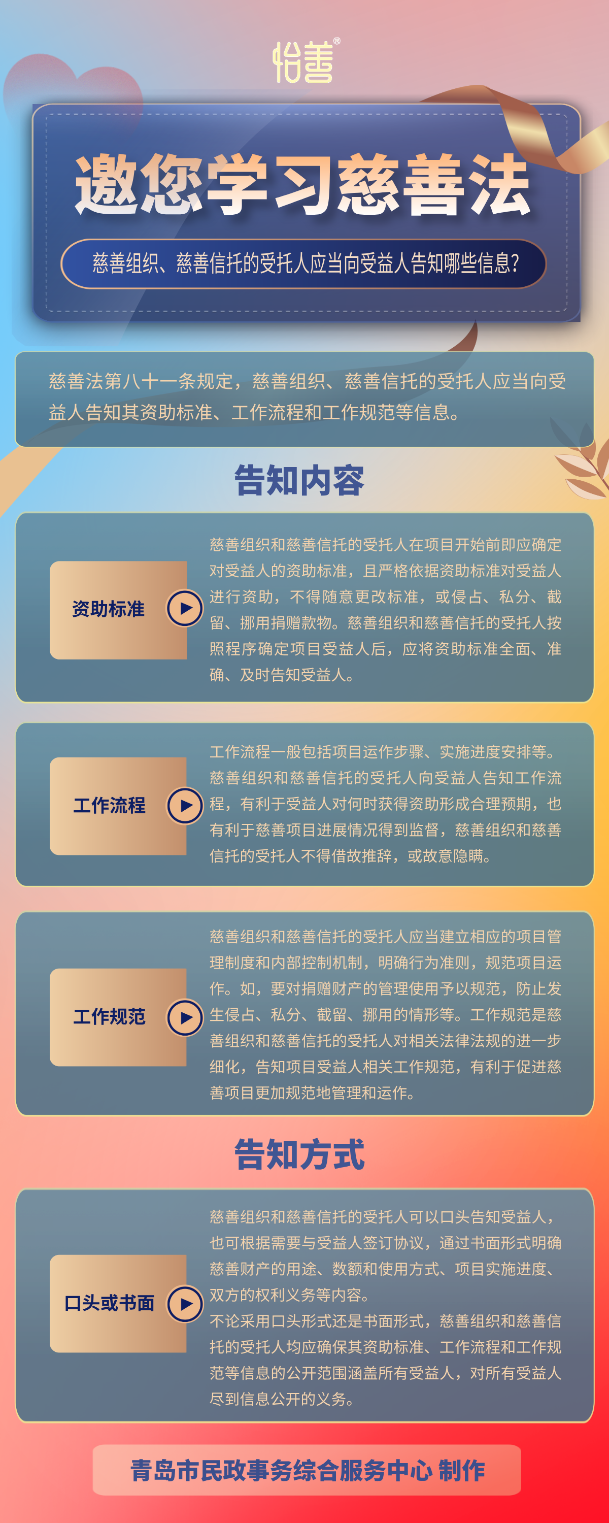 怡善·慈善法規(guī)|邀您學(xué)習(xí)慈善法-慈善組織、慈善信托的受托人應(yīng)當(dāng)向受益人告知哪些信息?