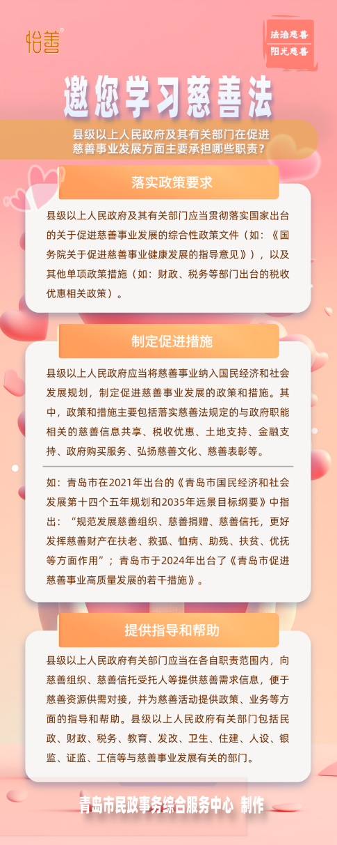 怡善·慈善法規(guī)|邀您學(xué)習(xí)慈善法-縣級以上人民政府及其有關(guān)部門在促進慈善事業(yè)發(fā)展方面主要承擔哪些職責?