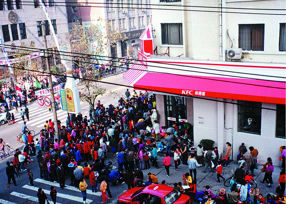 餐廳經(jīng)理向顧客述肯德基山東市場(chǎng)發(fā)展歷程