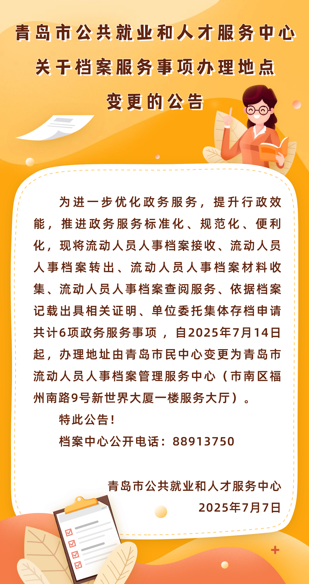 注意!這些檔案服務(wù)事項(xiàng)辦理地點(diǎn)變更!